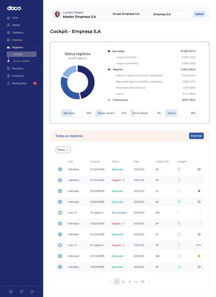 Digitalização ágil e rastreável, eliminando etapas manuais e garantindo velocidade, precisão e confiabilidade nos registros.